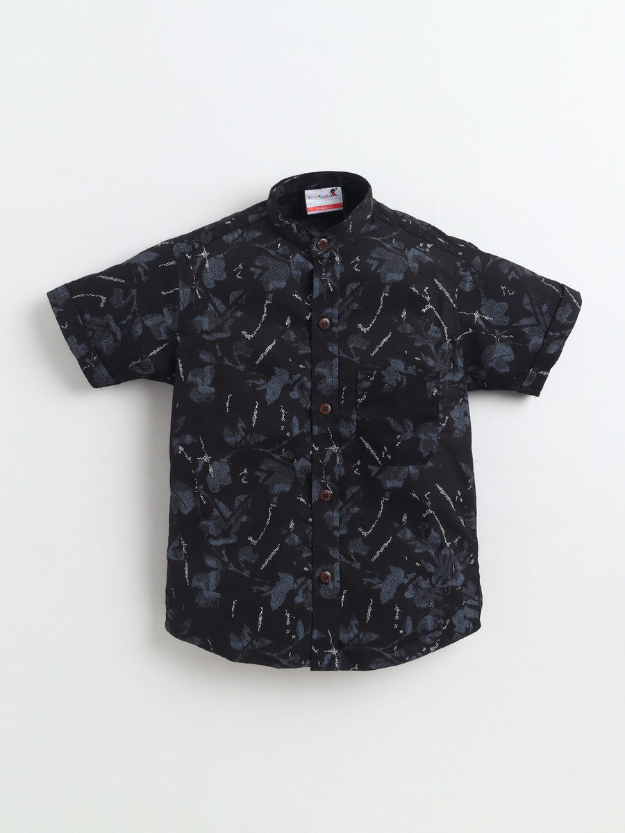 BAATCHEET Cottton Half Sleeves Abstract Printed Shirt- Black