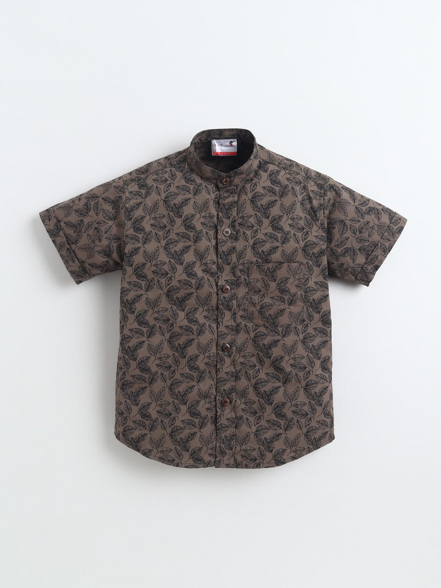 BAATCHEET Cottton Half Sleeves Leaf Printed Shirt- Brown