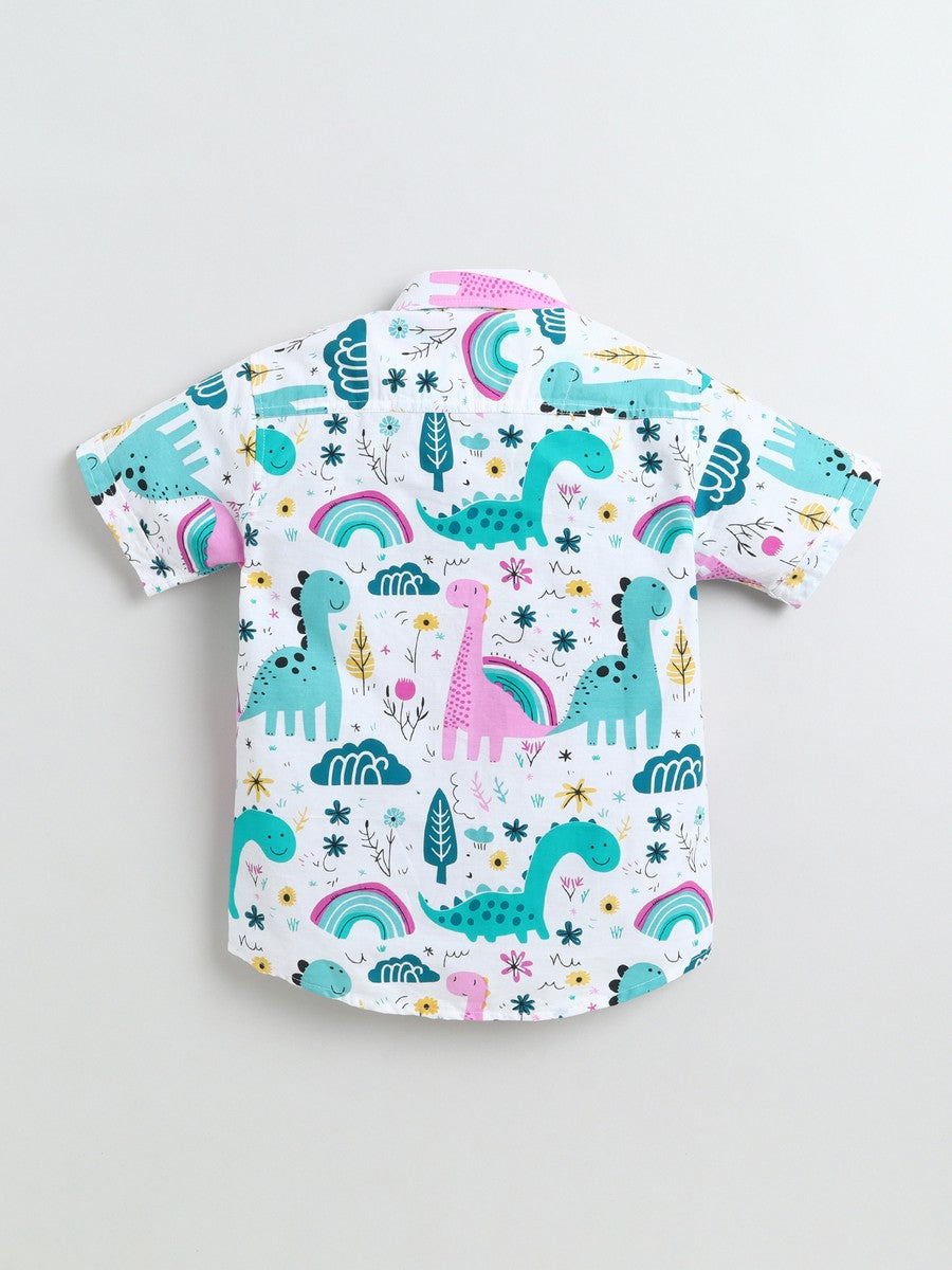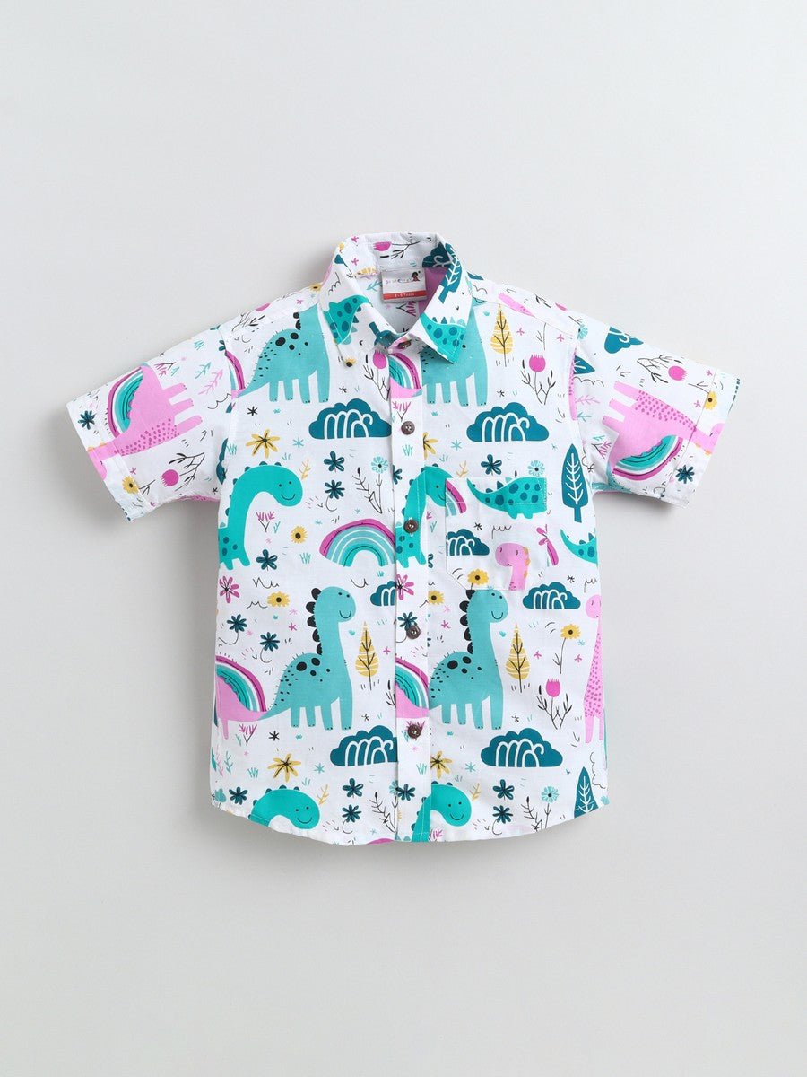 BAATCHEET Cottton Half Sleeves Dino Printed Shirt- Green